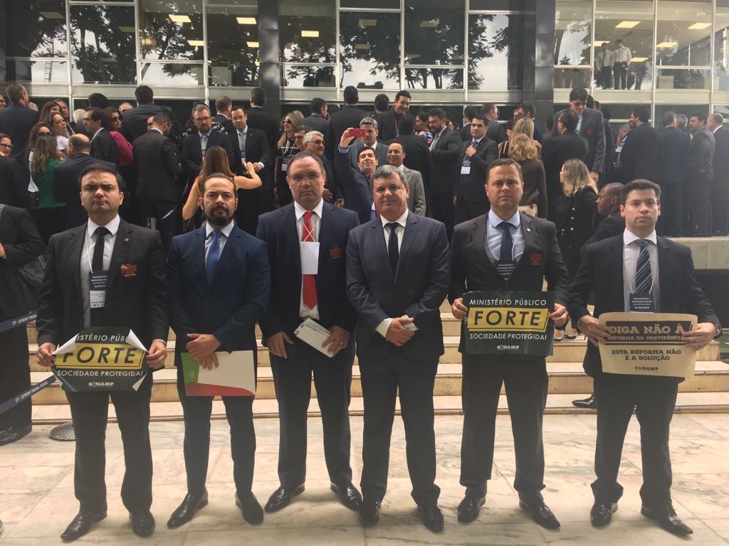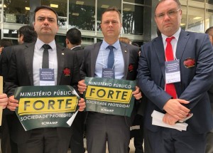 O Presidente da Associação Catarinense do Ministério Público (ACMP), Luciano Naschenweng, participou nesta quinta-feira, 1º de fevereiro, da grande mobilização nacional em defesa do Ministério Público e da Magistratura. O ato, organizado pela Frente Associativa da Magistratura e do Ministério Público (Frentas), em Brasília, reuniu mais de 800 pessoas. Também integraram a delegação catarinense o Sub-procurador de Justiça do MPSC, Fábio Trajano, o Secretário-Geral Fernando da Silva Comin, e os Promores de Justiça Anderson Adilson de Souza, Henrique da Rosa Ziesemer, e José Geraldo Rossi da Silva Cecchini.